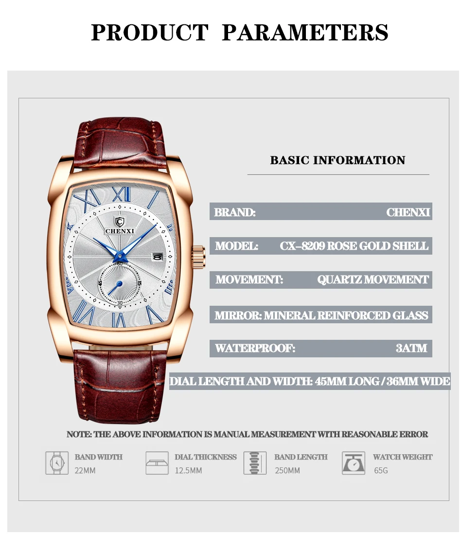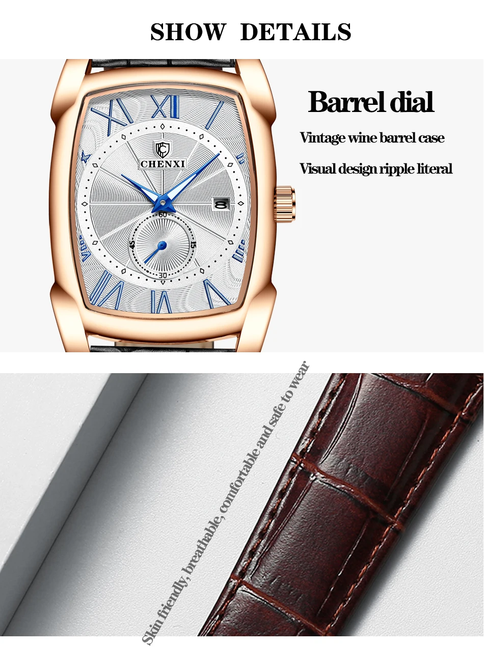 CHENXI Original Watch Gifts for Men Luxury Quartz Luminous Calendar Waterproof Wristwatches Leather Mens Watches Casual Fashion