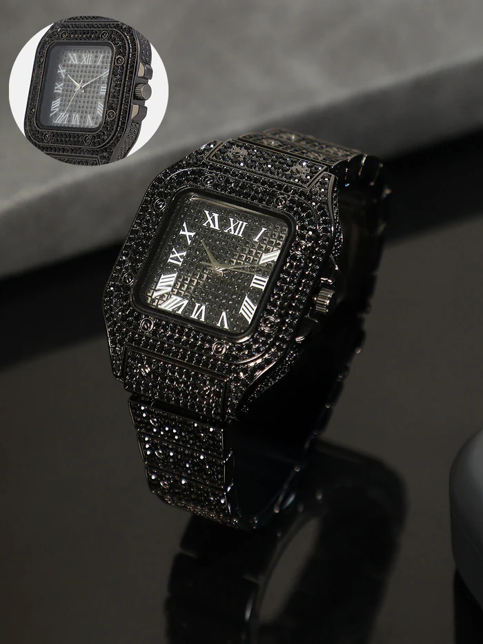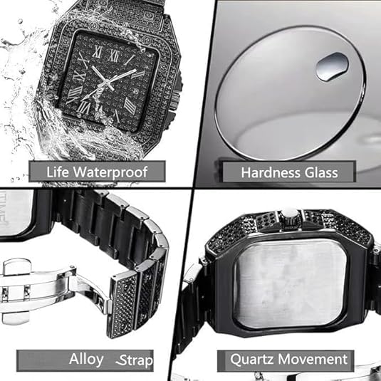 Hip Hop Watch:46MM Big Face,Fashion Square Style, Sparking Iced Out Diamond Decorate Strap and Watch,Especially suitable for hip hop rappers.