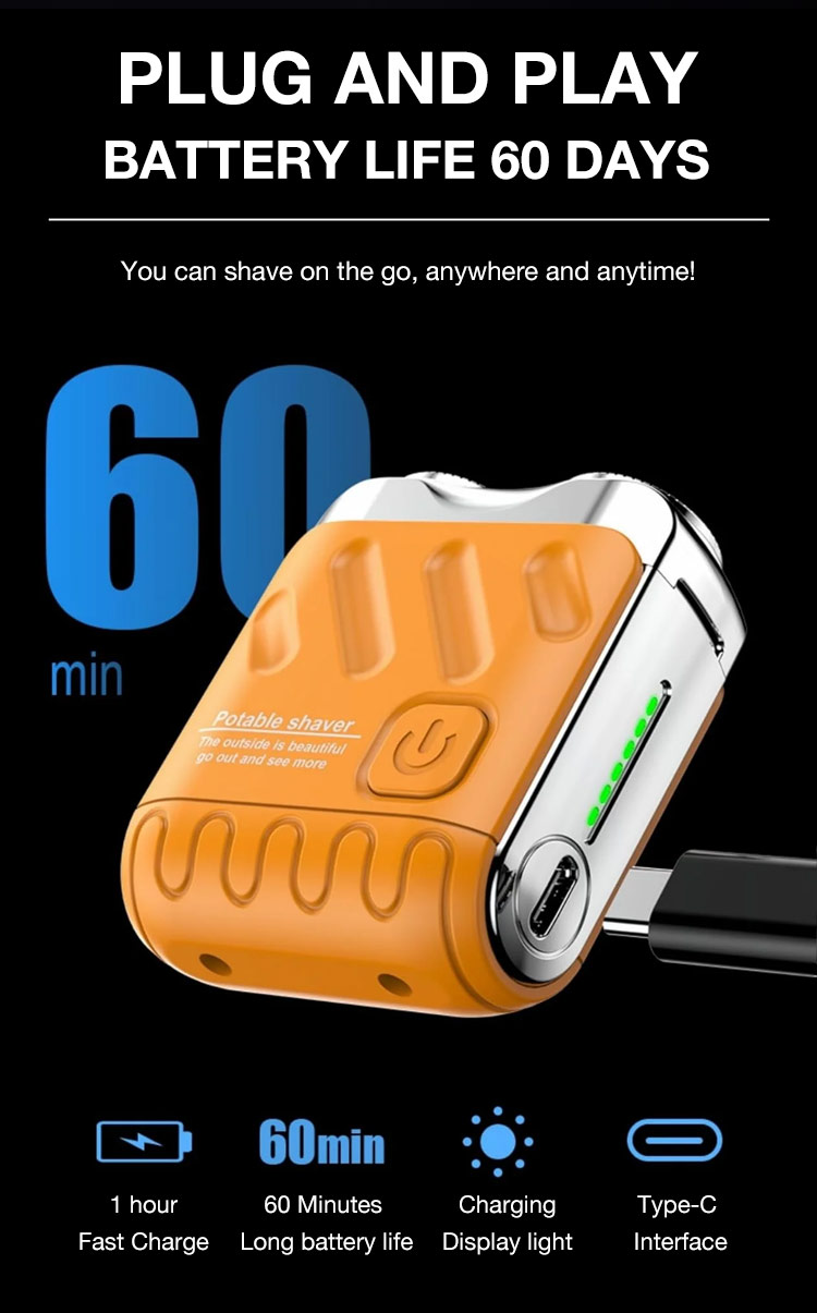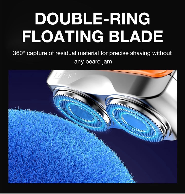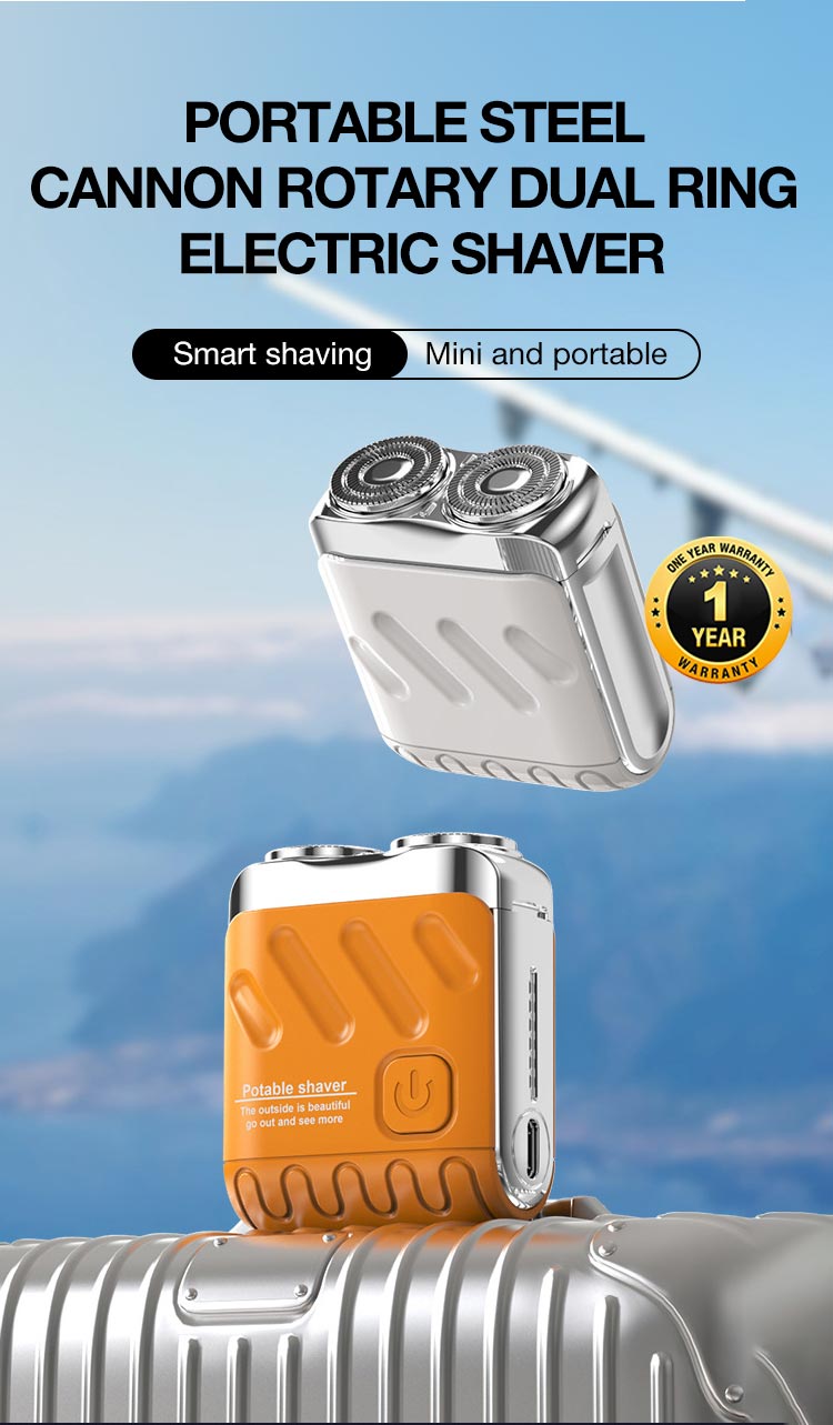 Portable Steel Cannon Rotating Double Ring Electric Shaver